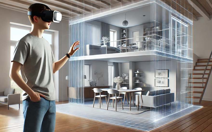 مرحباً بكم في شركة التطور القادم للواقع الافتراضي، وهي شركة رائدة في مجال التكنولوجيا متخصصة في حلول الواقع الافتراضي للتصميم الداخلي، ومتاجر التجزئة، والمساحات التعليمية.